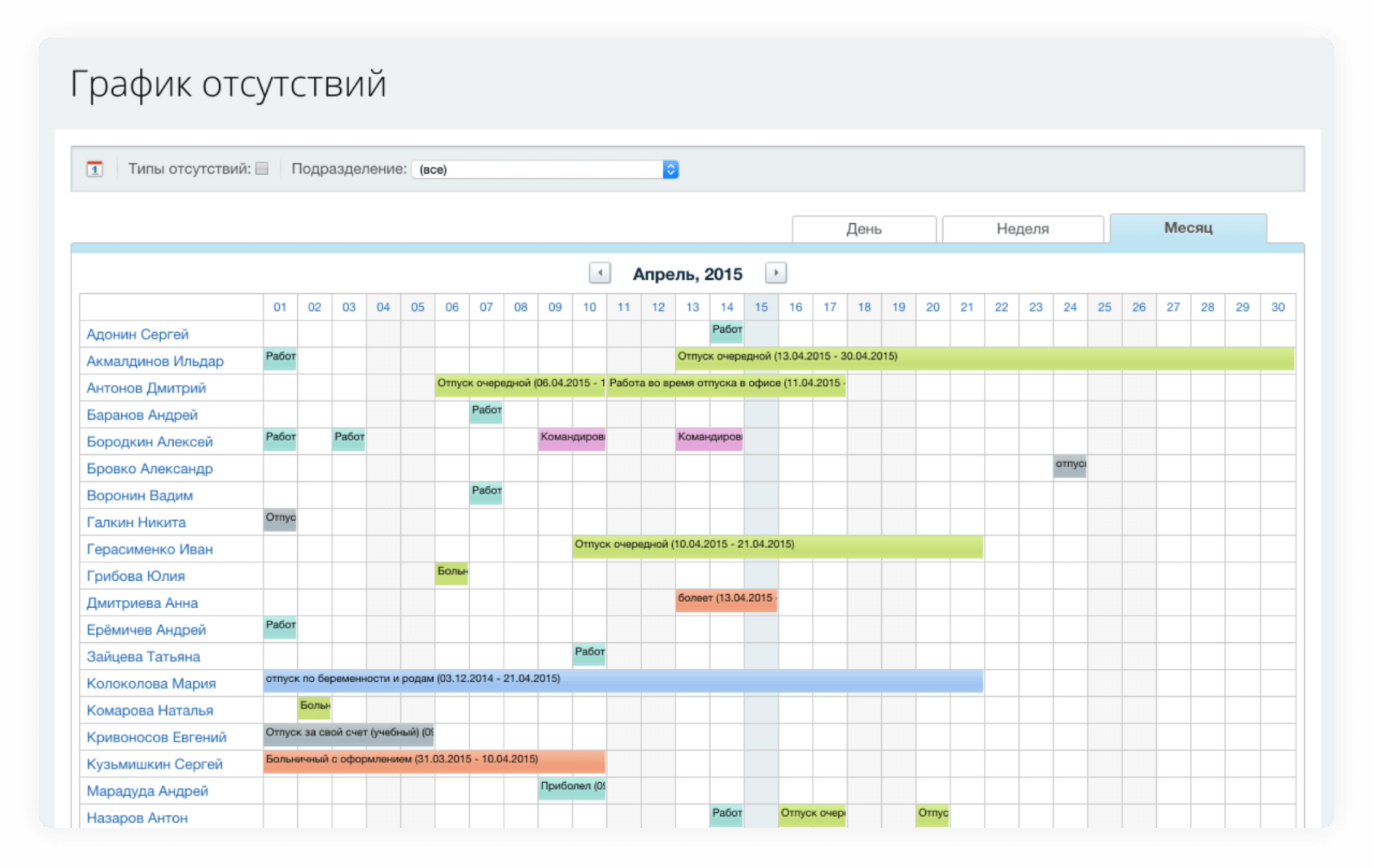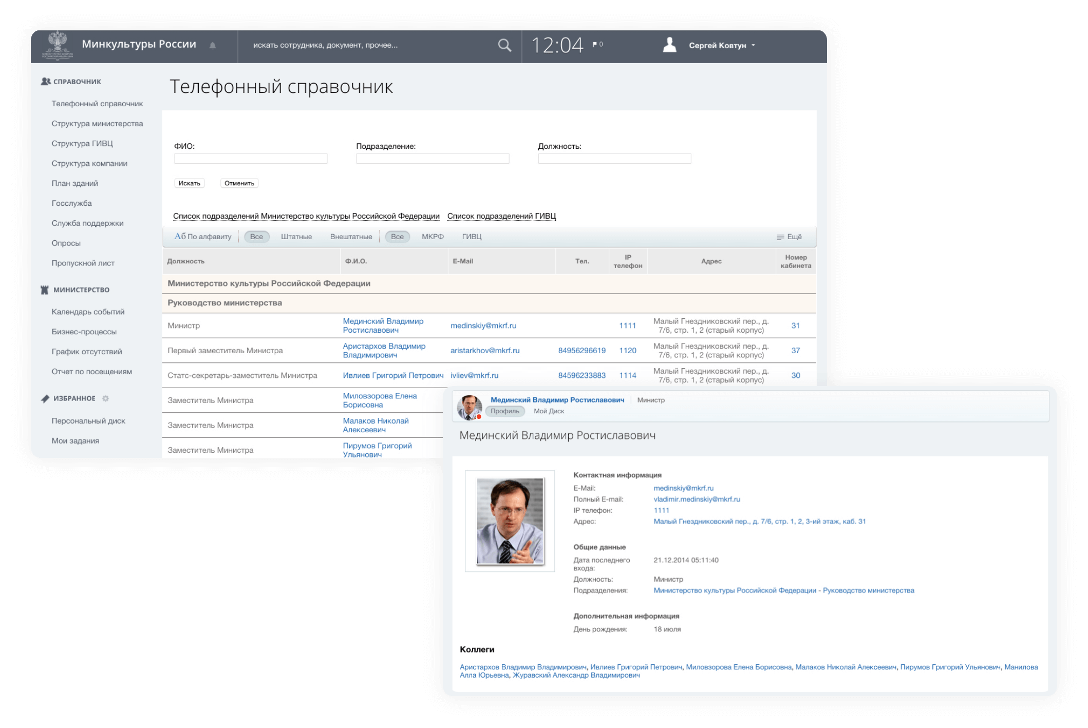 сотрудника министерства и информирование коллег об отсутствии и занятости.