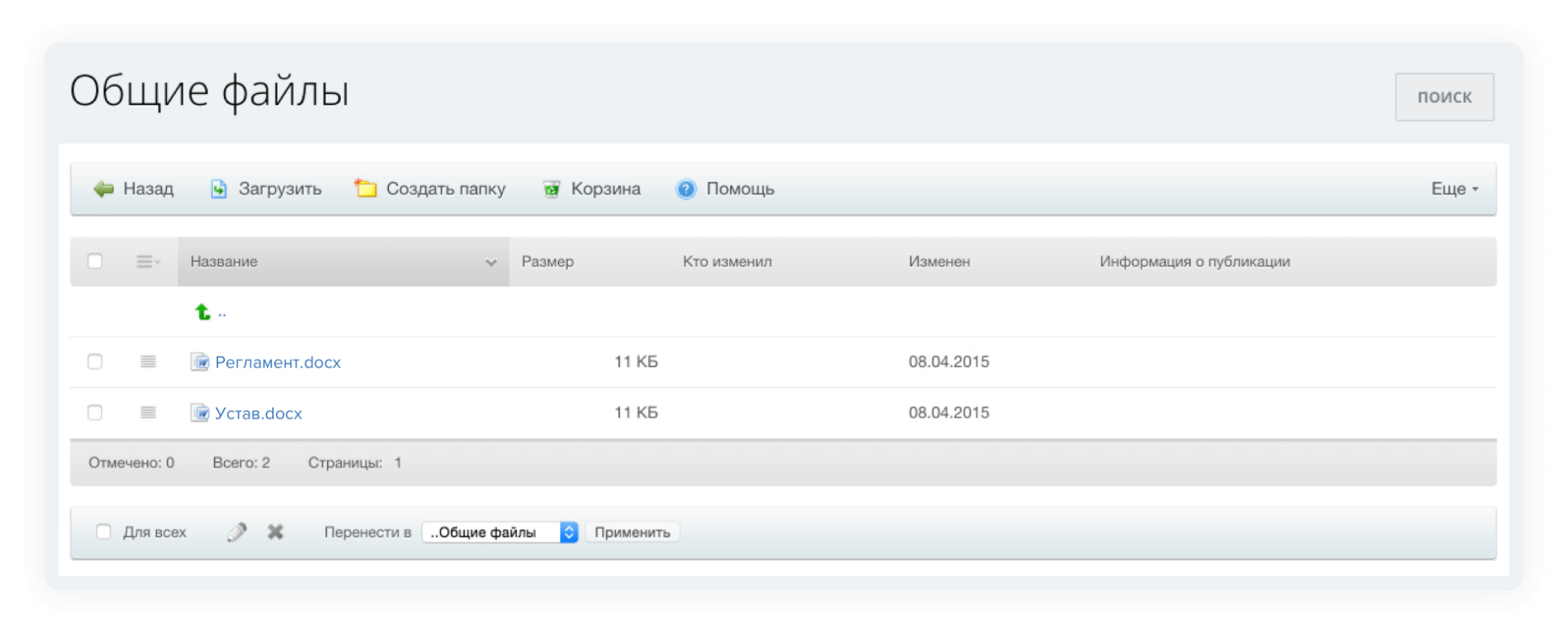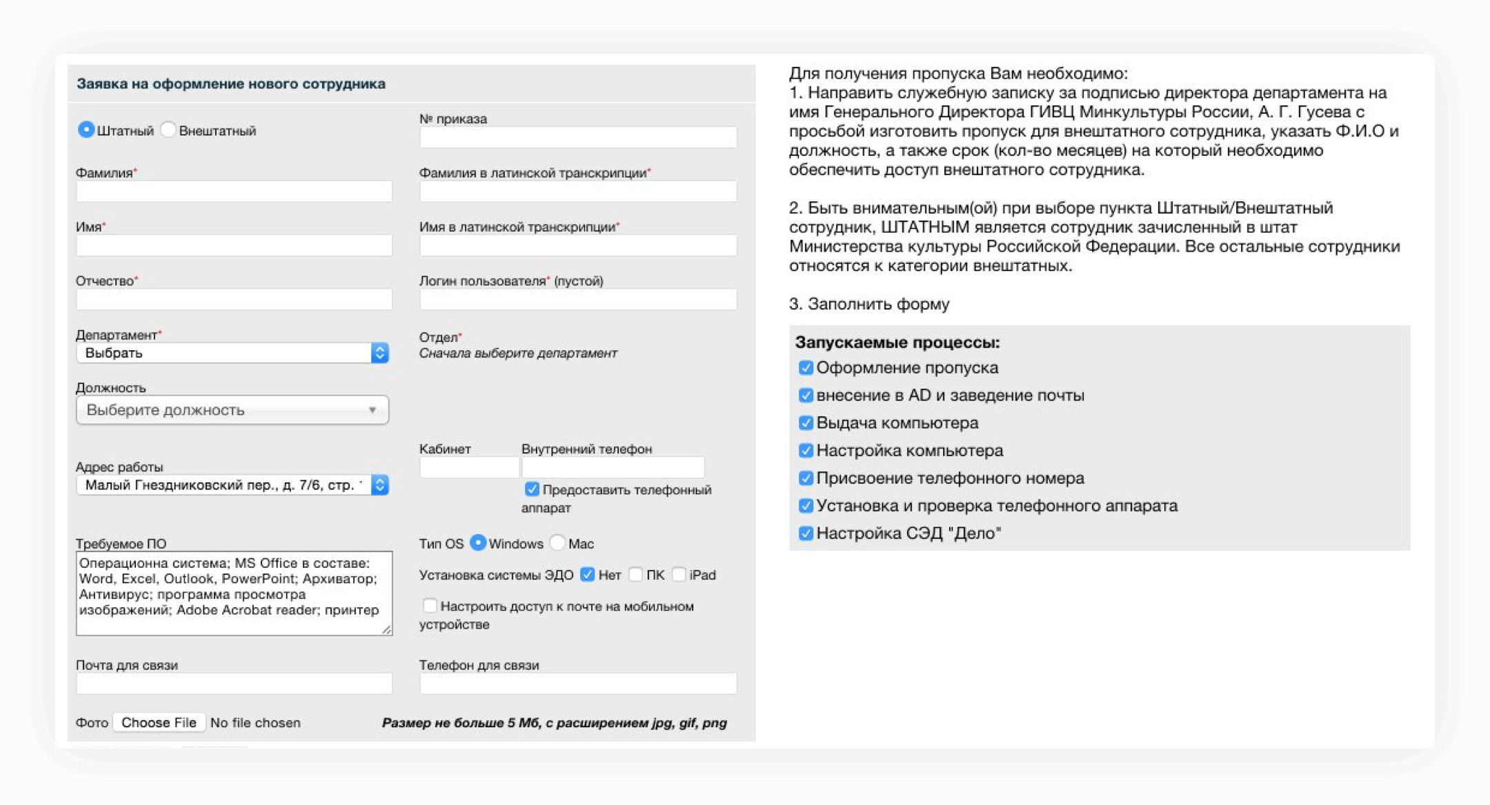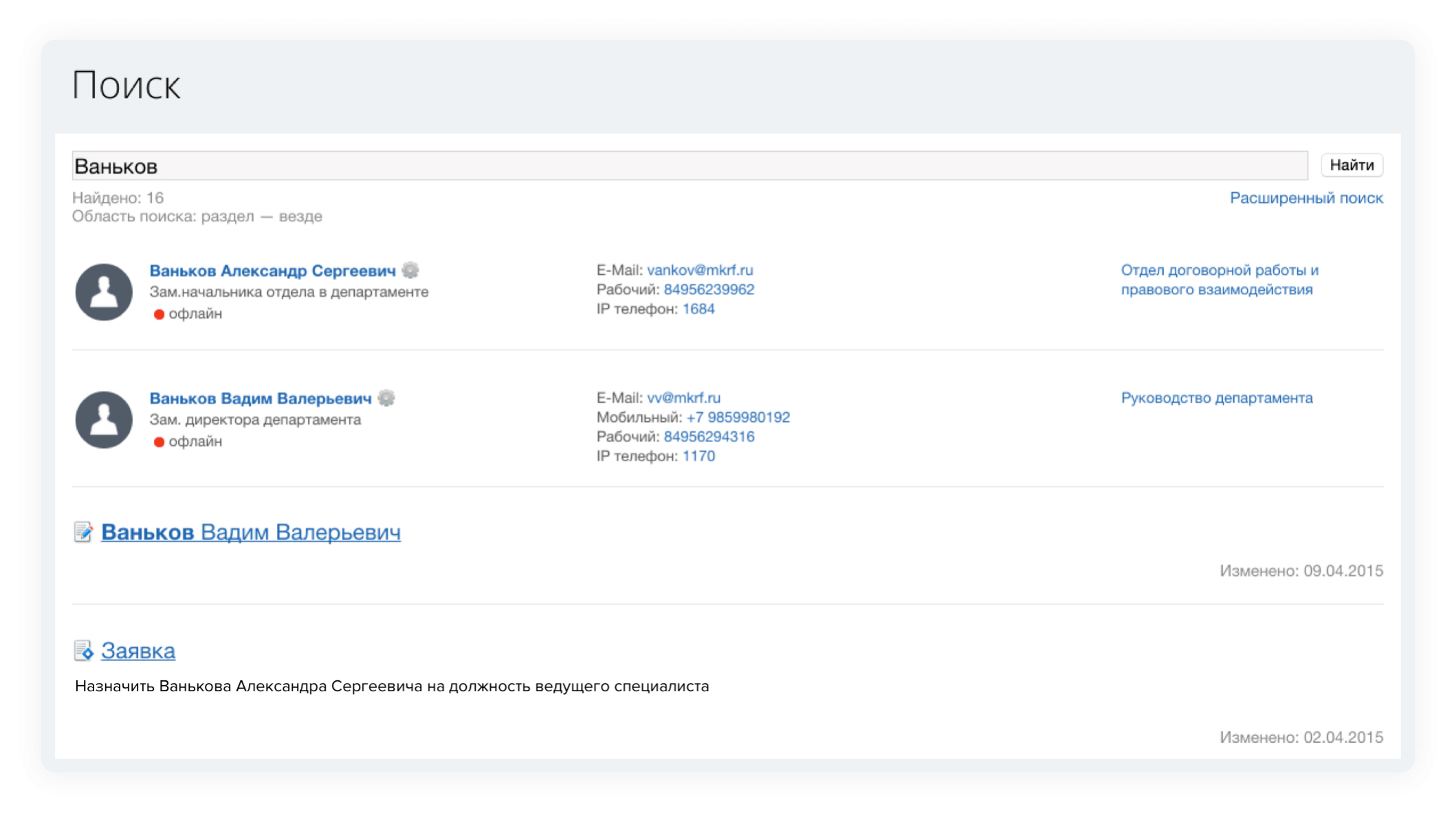 информации по целому ряду направлений: документы, сотрудники, организационная структура
