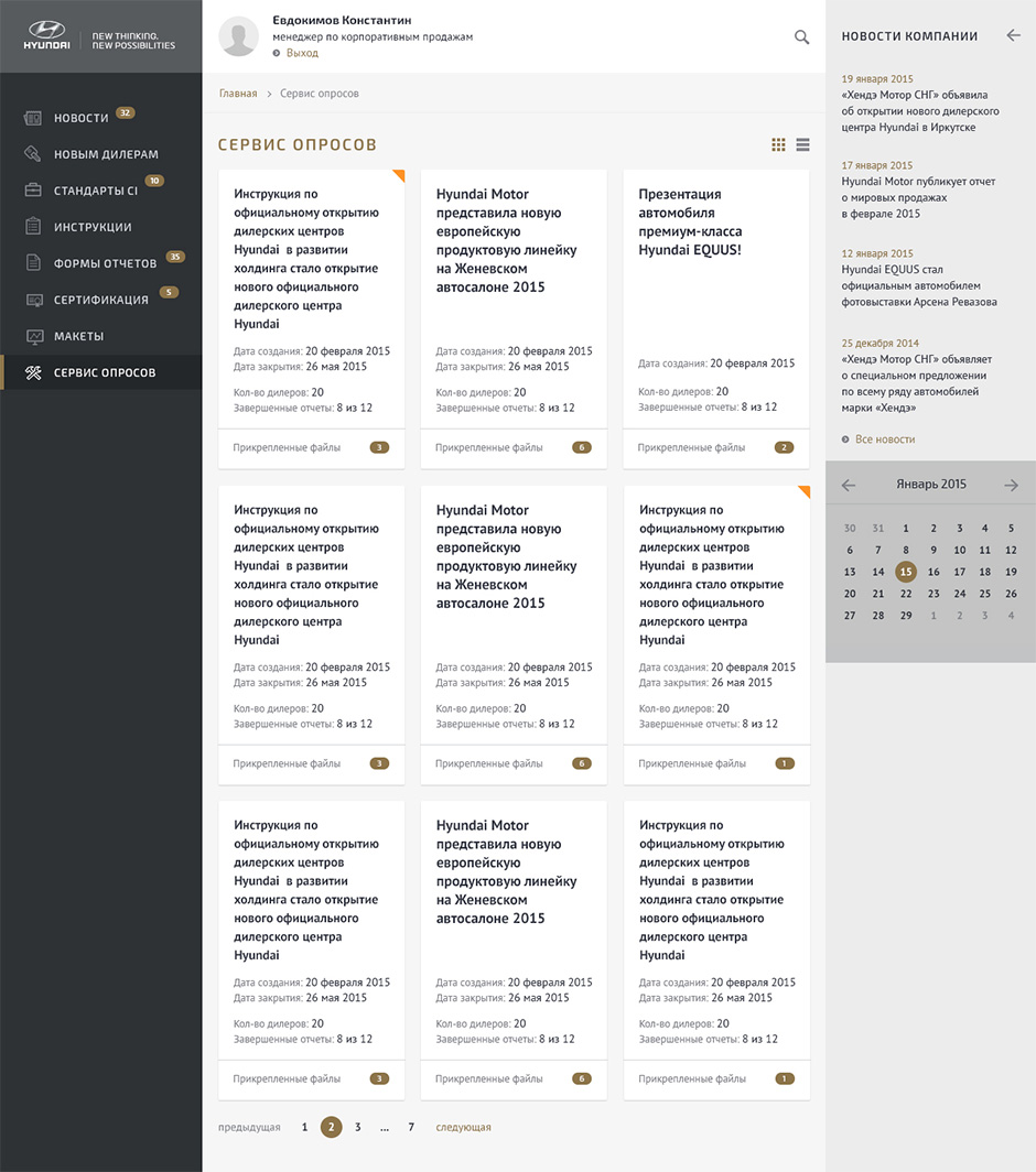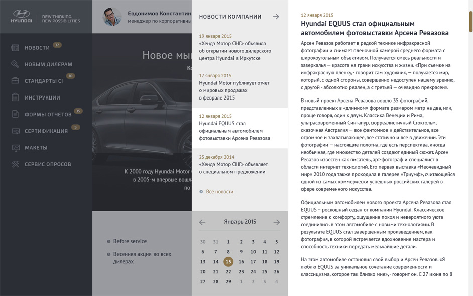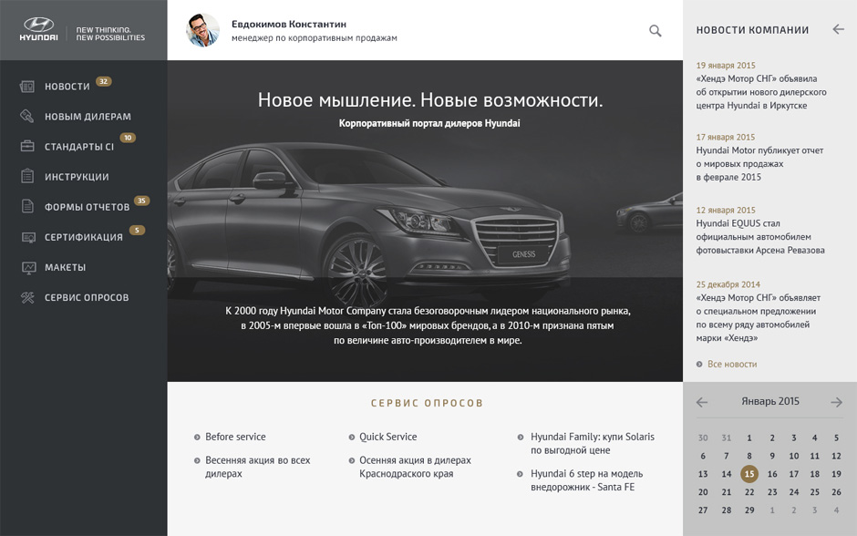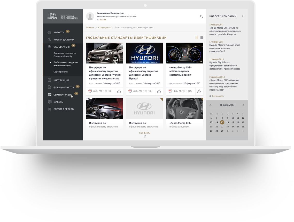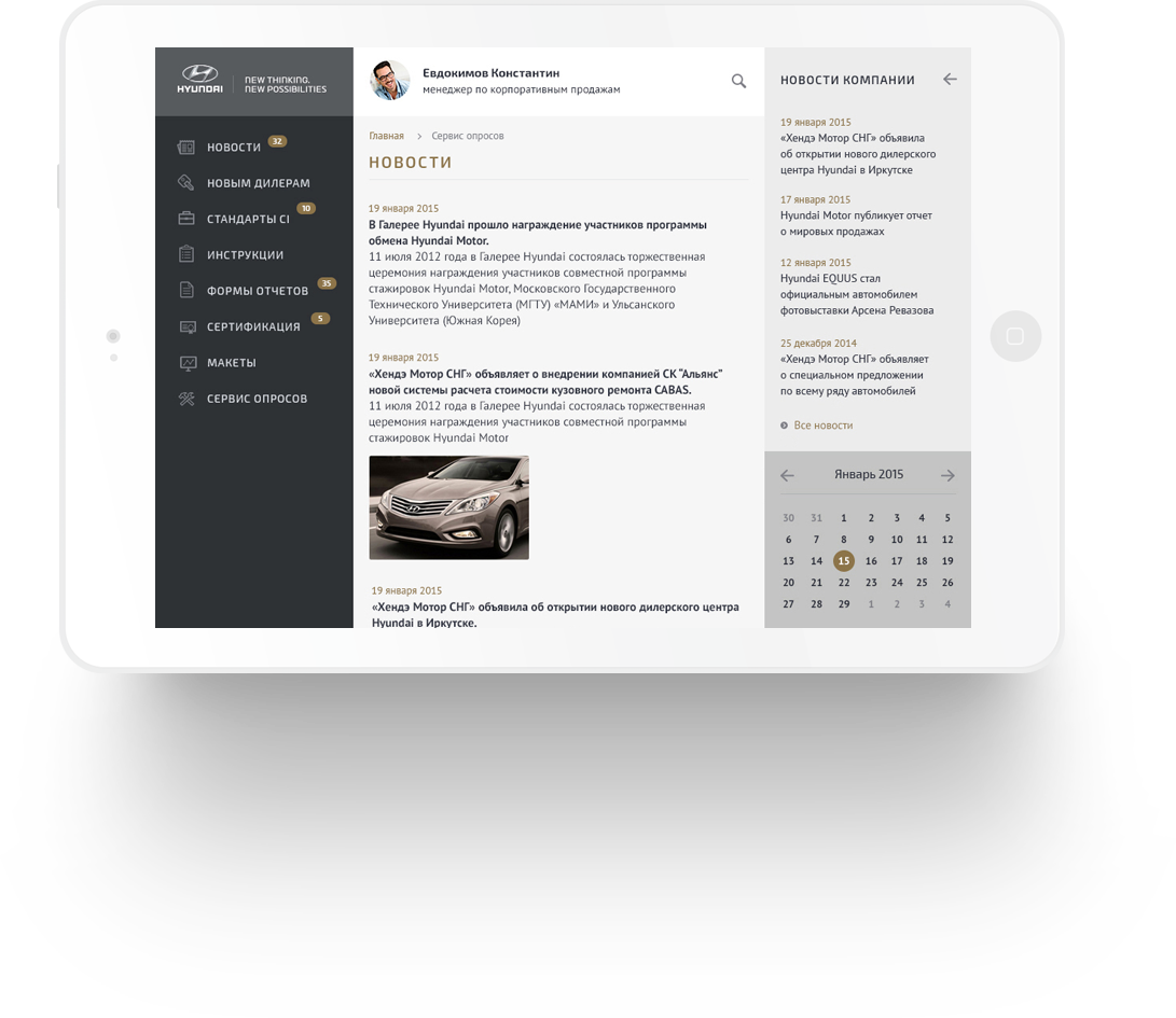 Внутренний портал крупной сети дилеров HYUNDAI решает все необходимые задачи и централизованный контроль отчетности дилеров