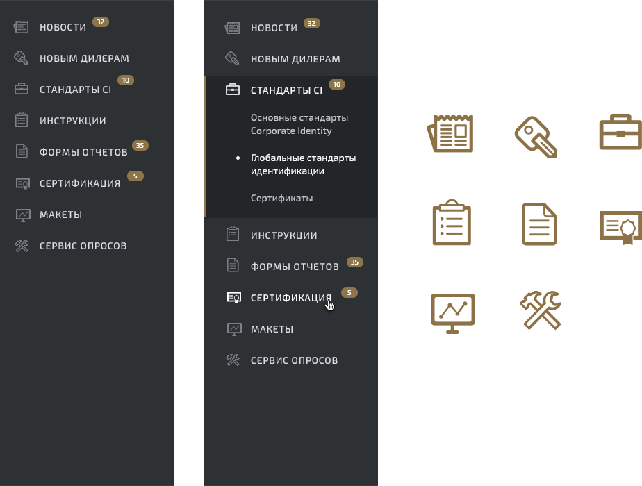 Меню, зафиксированное в левой части экрана, всегда видимое, что позволяет легко осуществлять навигацию по порталу. Блок новостей находится в постоянном доступе.