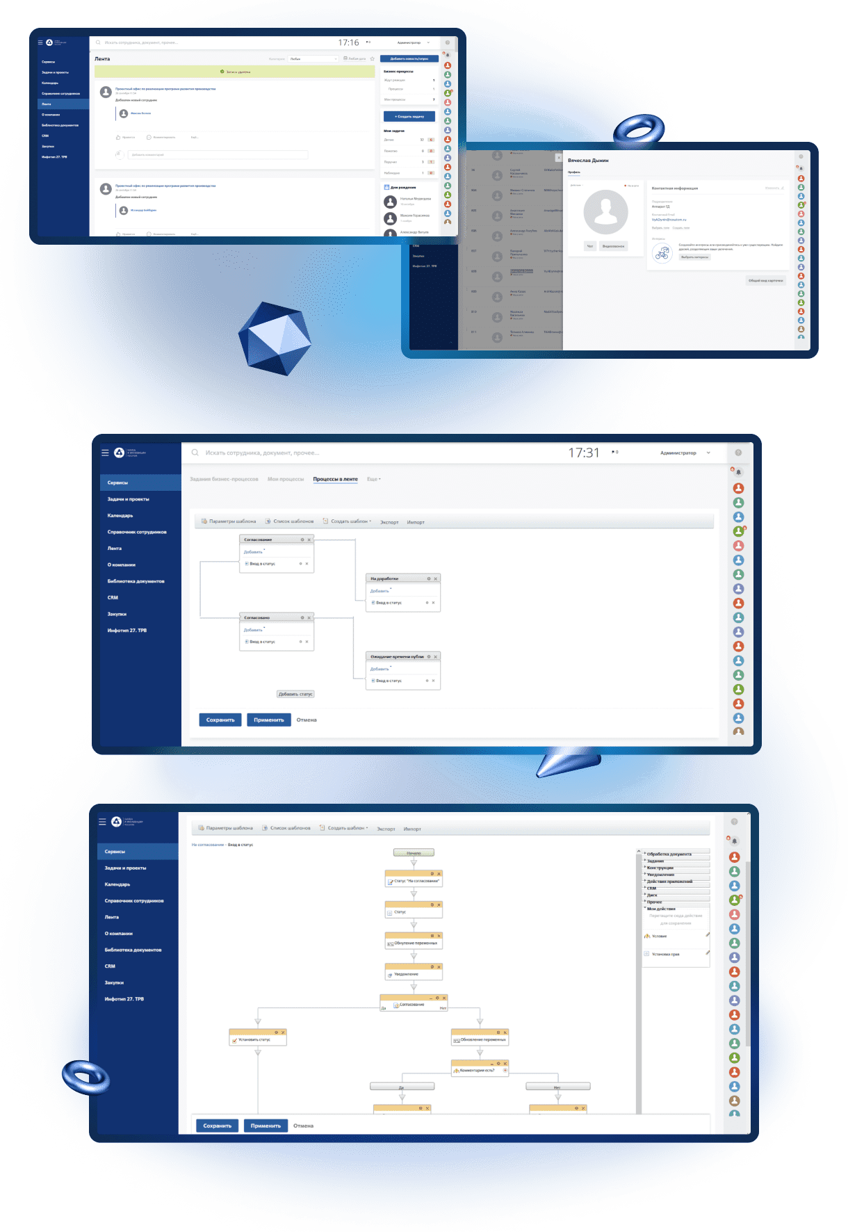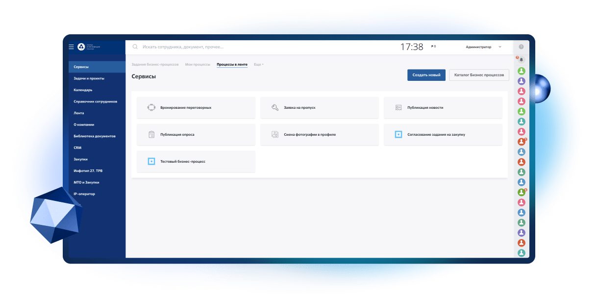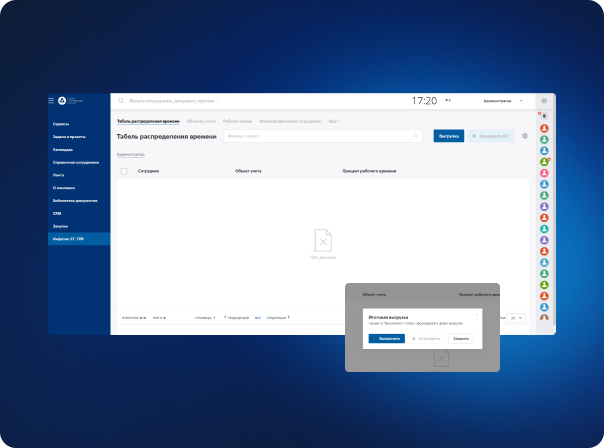 Доработать корпоративный портал для удобства внутренней коммуникации сотрудников, настроить ключевые бизнес-процессы и систему автоматического сбора и загрузки данных для учёта выполненных задач и рабочего времени.