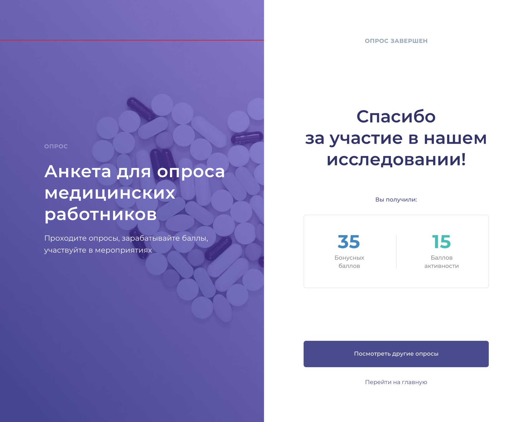 Портал «Общество врачей России» — единая платформа для врачей России. Проект создан для врачей-экспертов, где они могут делиться своим мнением, проходя опросы, обсуждать свой опыт с коллегами, участвовать в мероприятиях и получать приятные бонусы. Мы разработали минималистичный, функциональный дизайн: порталом удобно пользоваться и ничего не отвлекает от сути.